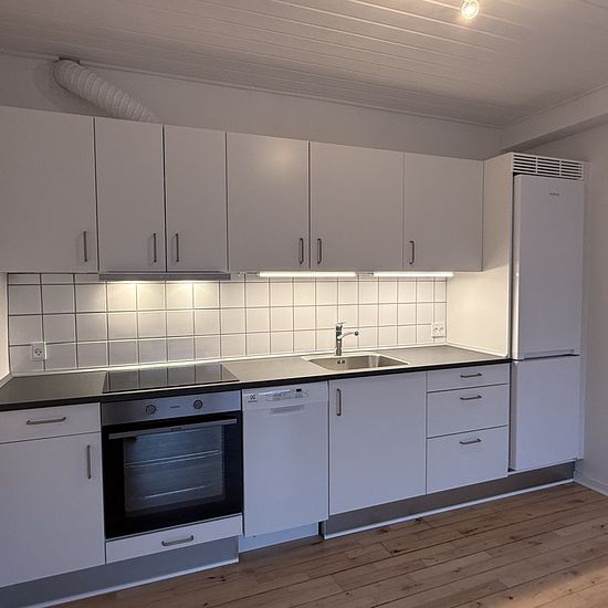 Nyrenoveret 2-værelses lejlighed med delvis overdækket terrasse. Lejligheden byder på en praktisk entre med nye skabe. Nyt køkken alrum med åben forbindelse til stuen. Soveværelset har nye indbyggede skabe. Walk in med nye skabe. Badeværelset er udstyret med nyt badskab, bruseniche og gulvvarme, samt plads til at opsætte egen vaskemaskine og tørretumbler. Fra Entréen er der adgang til en dejlig terrasse med delvis overdækning, perfekt til afslapning. Vaskeri i kælderen, og ejendommen er et velholdt boligkompleks med et stort haveanlæg og ...