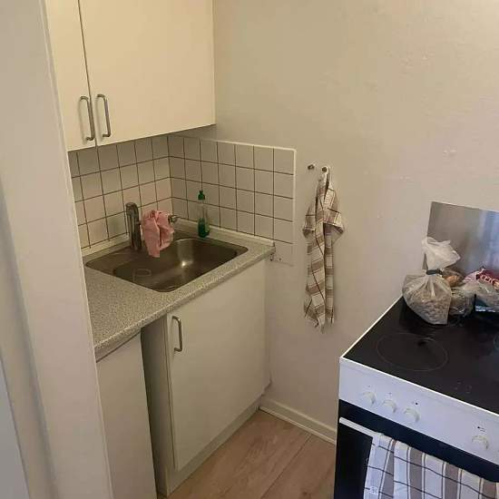 About the apartment • Entrance hall • Bathroom with shower • Combined living room/bedroom • Small kitchenette • Bright rooms and nice floors • Large windows with good natural light • Private outdoor space for garden furniture • Parking spaces right outside the door The rental is simple, functional and easy to maintain – ideal for students, commuters or singles. Pets are not allowed. Location: Fantastic central location The apartment is located in the attractive area around Aabenraa town centre: • 1 minute to the pedestrian street • Clo...