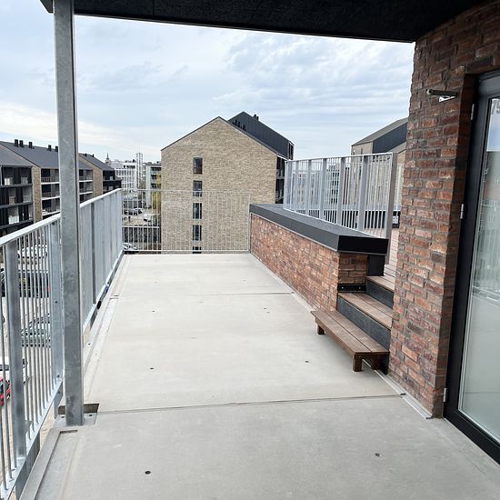 Denne 1 værelses lejlighed, ligger tæt på uddannelsescentrene, Campus Horsens og VIA University College samt godt 800 meter fra Horsens banegård Denne 1 værelses, består af entré, badeværelse med plads til egen vaskemaskine og tørretumbler, stue, køkken og soveværelse i et. Med et hvidt designa køkken, hvor der er mulighed for at tilslutte opvaskemaskine. lejligheden er udstyret med egen altan eller terrasse. Yderligere har alle ejendommens beboere adgang til den store fælles tagterrasse hvor fællesskaberne kan dyrkes. Der er skur og mul...