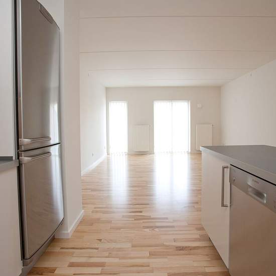 Welcome to this lovely 4-room apartment in Friskohus — perfect as a shared flat for two or three friends. The apartment is an end unit and every square metre is optimally utilised. You get: • Large, open kitchen-living area with fitted units from HTH and all major appliances • Bathroom with glass shower enclosure, wall-mounted toilet and combined washing machine and dryer • Three regular bedrooms The apartment is well laid out with large glazed sections that provide good natural light through the two-metre-high windows. All apartments in...