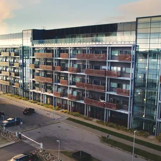 Welcome to the student housing at PFA Kollegiet. PFA Kollegiet offers attractive student housing that provides a sense of community for students. The dormitory is surrounded by green areas and is also located right on the Limfjord, so most student apartments have a view of the water. In addition, the dormitory is built using sustainable solutions and has received a DGNB Silver sustainability certificate. At PFA Kollegiet there is a strong focus on community. The dormitory is, among other things, equipped with large communal kitchens and gr...