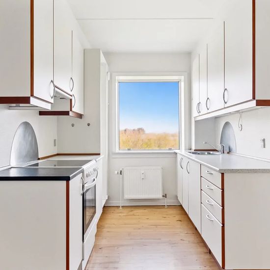 Oplev denne rummelige 100 kvadratmeter store lejlighed, der er den ideelle løsning til enten en stor familie eller som delebolig. Med sine fire lyse værelser tilbyder denne bolig masser af plads. Lejligheden byder på en god planløsning. Stuen er rummelig med masser af naturligt lysindfald fra de store vinduespartier. Herfra har du også adgang til en dejlig altan. Det moderne køkken er udstyret med rigelig opbevaringsplads og stilren indretning. Lejligheden har et lyst badeværelse med praktiske løsninger. Hver værelse har lyse trægulve, de...