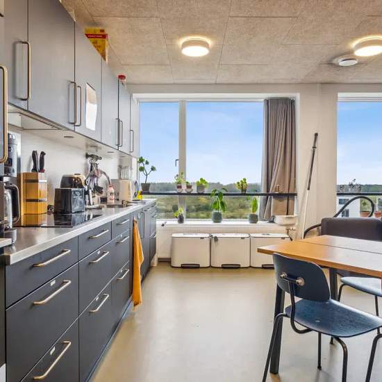 Velkommen til studieboligerne på PFA Kollegiet. PFA kollegiet tilbyder attraktive studeboliger, som tilbyder et fællesskab til de studerende. Kollegiet er omringet af grønne områder - det er ligeledes beliggende lige ud til Limfjorden, hvorfor de fleste studieboliger har udsigt til vand. Derudover er kollegiet bygget på bæredygtige løsninger og har modtaget et bæredygtighedscertifikat i DGNB sølv. På PFA kollegiet har man stor fokus på fællesskab. Kollegiet er blandt andet udstyret med store fælleskøkkener og fede fællesfaciliter såsom k...