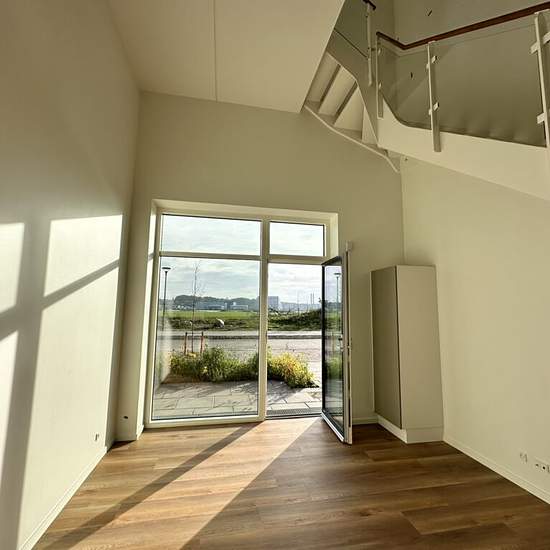 Velkommen til et luksuriøst boligområde på Stigsborg – hvor moderne design møder naturens ro. Dette eksklusive rækkehus er opdelt i 2-plan hvor begge plan har toilet og bad. Fra stueplan går man ind i en “1-værelses lejlighed” hvorfra man kan tage trappen op til 1. sals lejligheden. I stueplan er der mulighed for at have liberalt erhverv. Stueplan består af et opholdsrum, med vask og køleskab, badeværelse med vaskesøjle samt en rummelig hems. Stueplan vil også være den perfekte mulighed for teenageren. 1. sal kan også tilgås fra egen te...