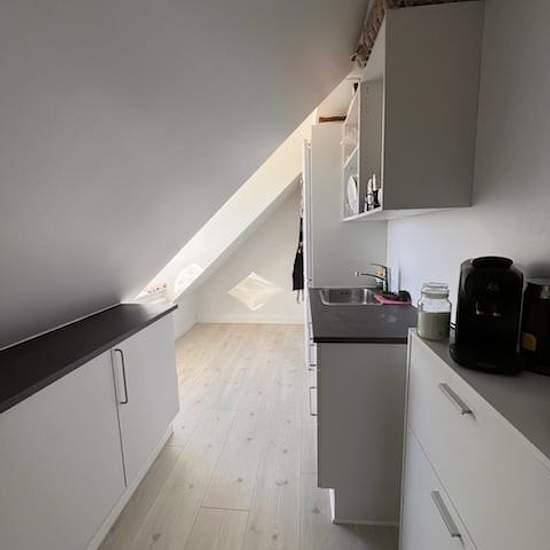 Only serious inquiries. If you book a viewing and then change your mind, please cancel well in advance. Lovely bright top-floor apartment for rent. The apartment has a hallway that provides access to all the rooms. The kitchen has plenty of cupboard space and is equipped with an extractor hood, a glass-ceramic hob, and a fridge/freezer. Nice bathroom with a shower. Nice bedroom and a very good living room. In the basement there is a washing machine and a tumble dryer that can be used for a fee. Really nice courtyard area. Small pets ...