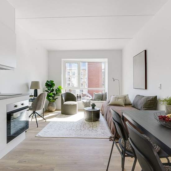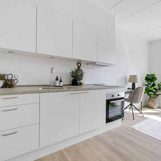 A creative environment close to the performing arts and the cool streets of the Østre Gasværk neighborhood. Experience the benefits of “small living” in Grunwaldshave. Our one-room apartments are bright and ready to move into and put your personal stamp on. You get your own oasis of 43-48 m2 with a private bathroom and kitchen, and a brilliant location close to your places of study or work and the city's best areas. In Grunwaldshave you live right where things happen. In the heart of charming Østerbro and close to a harbour dip in Nordhavn. ...