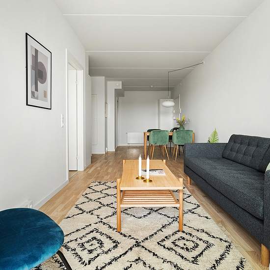 HIMMELBYEN’s homes vary in size, character and location. The many two-room apartments are attractive to modern city dwellers who either work or study in the city — both nearby and farther afield. The 3- and 4-room apartments provide space for slightly larger families. In the 21 townhouses residents live across two well-planned levels — and even have a private roof terrace. What all HIMMELBYEN’s homes have in common is the view: views over the city and the nearby green areas, views of the sky, and not least the view of the large communal co...