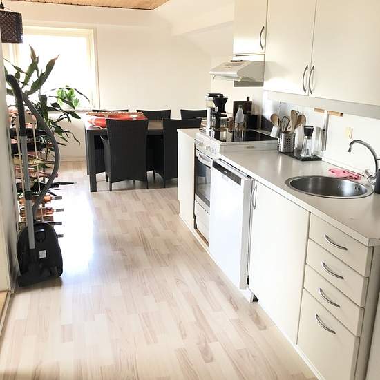 Lovely 4-room apartment of 95 sqm which includes: Pleasant living room connected to an open kitchen, 3 bedrooms and a bathroom. Good parking facilities. Heating: Natural gas with billing through the landlord based on radiator meters. Water consumption: Fixed contribution of kr. 300.00 per person. Electricity consumption: Own meter with billing directly to the utility company. Appliances: Stove, extractor hood and fridge/freezer. Pets: Not allowed. Rent: a/c heating: Water contribution: kr. 5.995,00 kr. 800,00 kr. 300,00 (kr. 300,00 per pe...