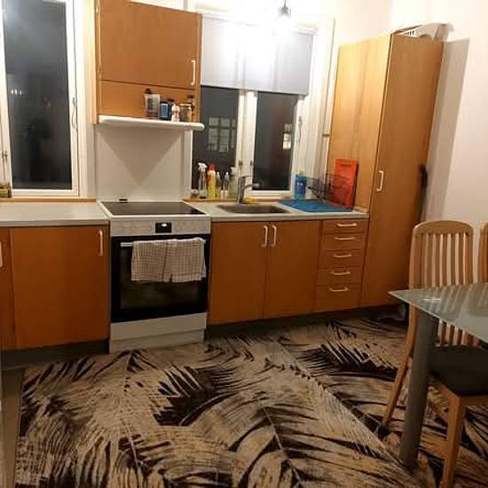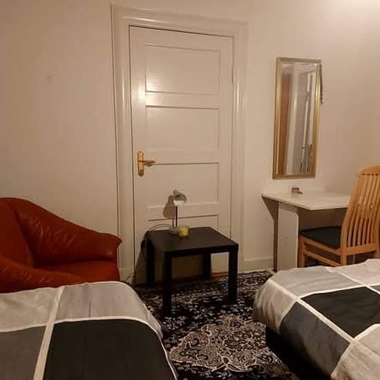 Møbleret værelse til leje med køkken og badeværelse, beliggende i en toværelses lejlighed, klar til øjeblikkelig indflytning, tæt på byens centrum, til en pris af 3000 kr inklusive vand og el, ingen depositum kræves.