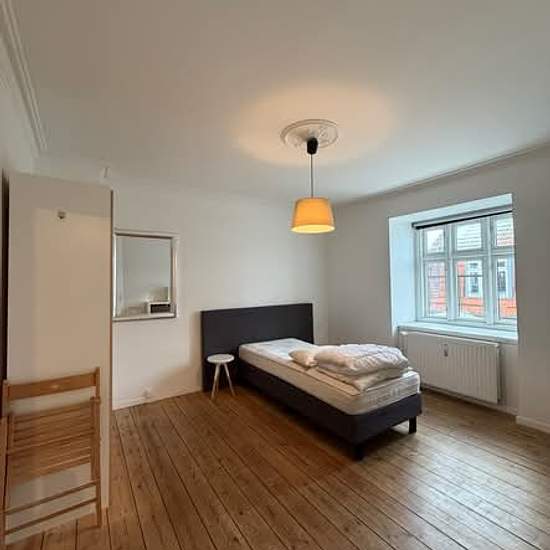Spacious private room for one person in a three-bedroom apartment. Rent: 6,000 kr. Water, heating, and electricity are included in the rent. Wi-Fi is not included. The deposit is equivalent to three months’ rent and can be paid in two instalments. CPR registration is available. Feel free to contact us to arrange a viewing or if you have any questions.