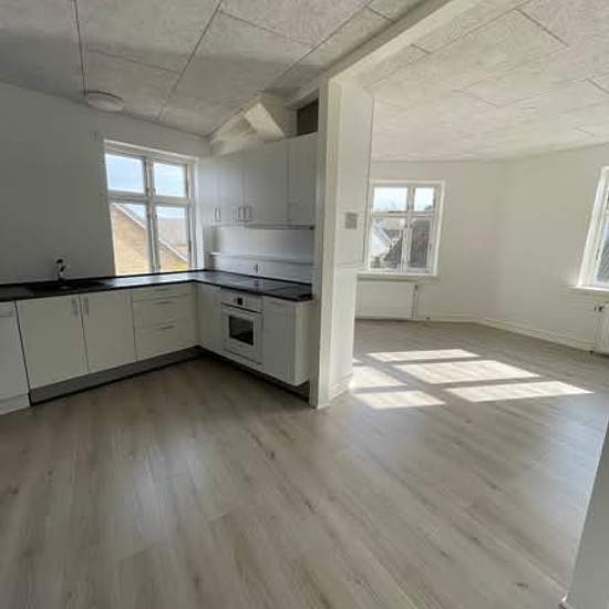 Lovely - Bright - Newly renovated apartment on the 1st floor in Glesborg for rent. Available from 01/02/26 • 132 m2 • 3.5-room apartment • 6700 DKK/month + utilities There is a shared garden and parking. Located in Glesborg close to Super Brugsen, Coop365 and a bus stop. Contact Claus, Tel.