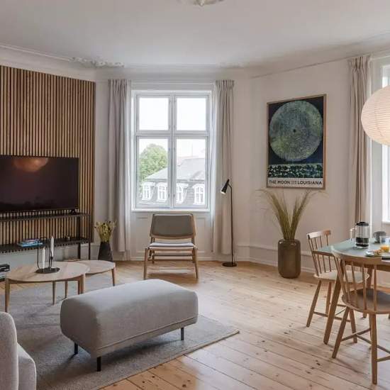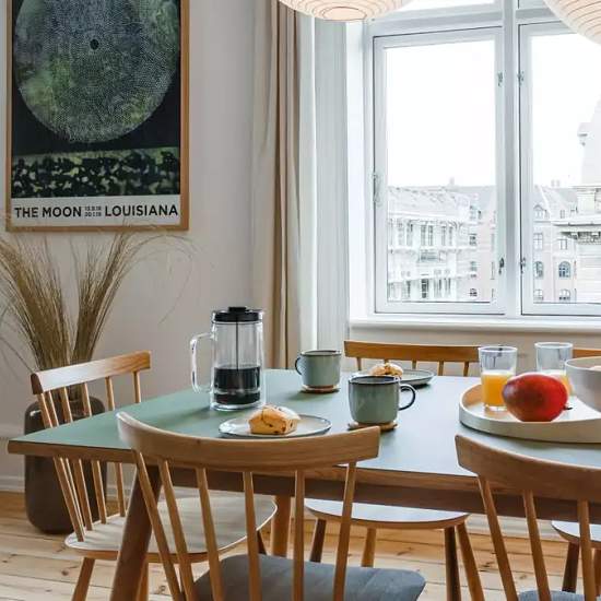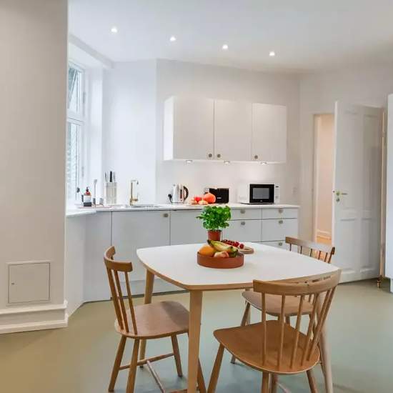 On the 17th of October, our brand new coliving home Mynster will open it's doors! This fully renovated apartment has has a modern kitchen with dining area, a brightly lid living room with cozy couches, 3 beautiful single bedrooms and 2 couples rooms (1 with ensuite bathroom). There is 1 big shared bathroom with laundry facilities and an extra guest toilet. The apartment is on the 4th floor overlooking both the Mynstervej and the Gammel Kongvej, where you can find a lot of interesting shops and restaurants. The supermarket is right downstairs...