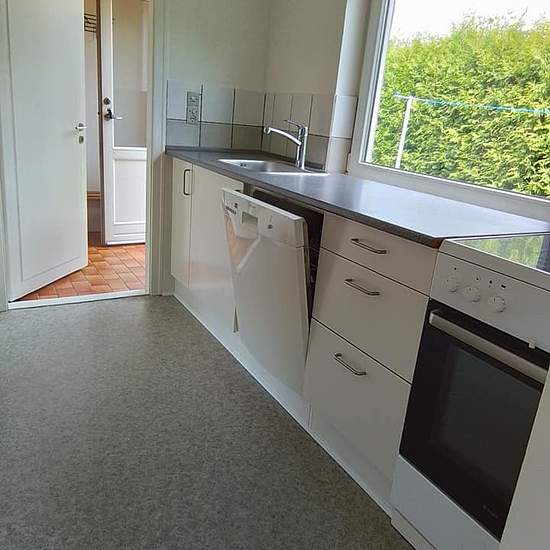 Nice apartment of 68 m2. BjerregårdsAlle 3b Fjelstervang. 2 rooms. Small bathroom. Kitchen and living room. With its own small garden. The grocery store is 50 meters from the apartment. Deposit: 3 months' rent. Advance payment for utilities: 1,500 DKK per month. Can also be contacted at Available from 01/10/2025
