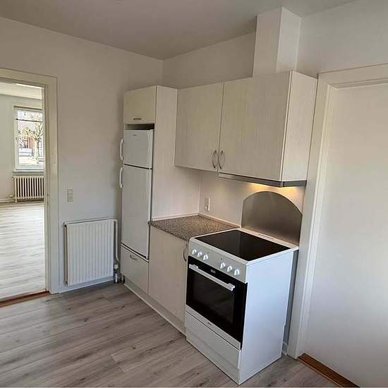 Dejlig 3 værelses lejlighed beliggende centralt i Møldrup. Lejemålet er nyistandsat og beliggende i stueplan. Foruden køkken, med mulighed for lille spiseplads, er der en dejlig regulær stue med gode indretningsmuligheder og 2 rigtig gode værelser. Beliggenheden er meget centralt, kun ca. 100m fra indkøbs-muligheder. P-plads og indgang i gården. Indflytningsdato 01.02. eller 01.03.2026 Kontakt
