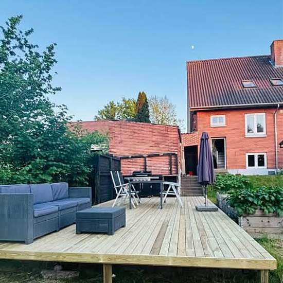 For rent in Brovst. Lovely large family-friendly house in Brovst. 169 sq m + 95 sq m basement with private garden. Preferably quick move-in. Consisting of: - 2 living rooms adjoining each other - 5 rooms (one of the rooms has access to its own terrace) - Kitchen - 1 bathroom - 1 guest toilet - Nice large garden with a new wooden terrace plus a raised terrace, and a trampoline - Shed and carport Includes refrigerator, stove, dishwasher and large chest freezer. Basement (storage, not for habitation) + "workshop" Price: DKK 7,400 + utiliti...