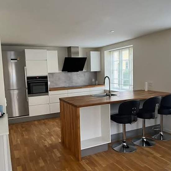 Apartment on the pedestrian street offered for rent. (Albuen 1, 9990 Skagen) 97 m2, 2 floors, balcony, 1 parking space. Includes: Ground floor - open-plan kitchen/dining area and living room, as well as a bathroom. 1st floor - living room, bedroom, walk-in closet and a small storage room. Deposit: 3 months' rent. Rent: 9,000 DKK + utilities. Contact Christian Vejby by phone at 57 or by email
