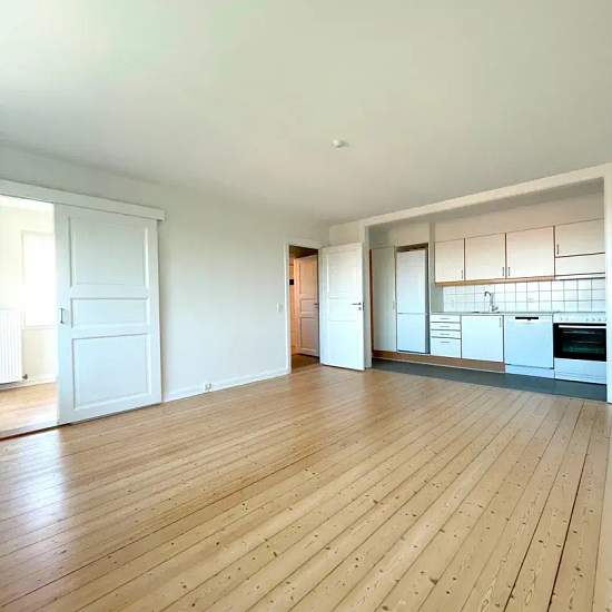 Velkommen indenfor i denne 2-værelses lejlighed i Nørresundby. Når du træder indenfor, mødes du af lyse trægulve, der er gennemgående i hele lejligheden. Den rummelige entre fører dig videre til boligens værelser, der begge har et godt lysindfald gennem de store vinduer. Køkken er udstyret med hvide skabe og stilrene bordplader. Badeværelset er indrettet i lyse toner og tilbyder alt det nødvendige. Lejligheden er centralt beliggende med nem adgang til lokale faciliteter, shoppingmuligheder og offentlige transportforbindelser. *OBS: Bi...