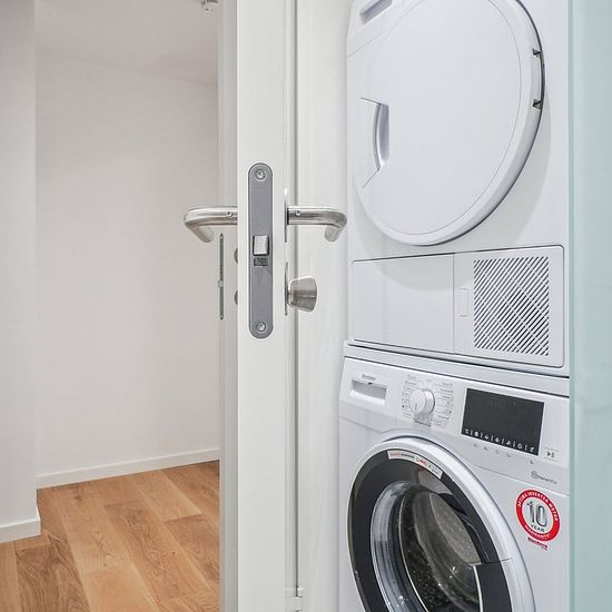 Om boligen: Denne skønne og optimerede lejlighed starter med at byde dig velkommen i lys entré med plads til at hænge overtøjet. Fra entréen har du adgang til boligens to værelser, hvor der både er plads til seng og skrivebord. I det store soveværelse har du adgang til depotrum, som med fordel kan bruges til walk-in, hvis dette foretrækkes. Fra entréen har du ydermere adgang til badeværelset, som er opført i et tidløst lækkert design, rummeligt og med separat bruseniche og hertil både med vaskemaskine og tørretumbler. I det store lyse køkken...