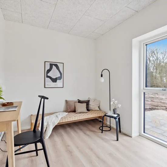 Dette 5-værelses rækkehus på 114 m² er opført i en moderne og enkel stil med lyse rum og en god indretning. Rækkehuset har en rummelig entré med skabsplads og vaskesøjle. Køkken-alrummet og stuen er samlet i ét stort opholdsrum med plads til både spisebord og sofa. De store vinduer giver et flot lys og udgang til terrassen. Boligen har fire værelser, som kan bruges efter behov – fx som soveværelse, børneværelser eller kontor. Badeværelset har separat bruseniche og god plads. Rækkehuset ligger i Vestbjerg, et område kendt for trygge bolig...