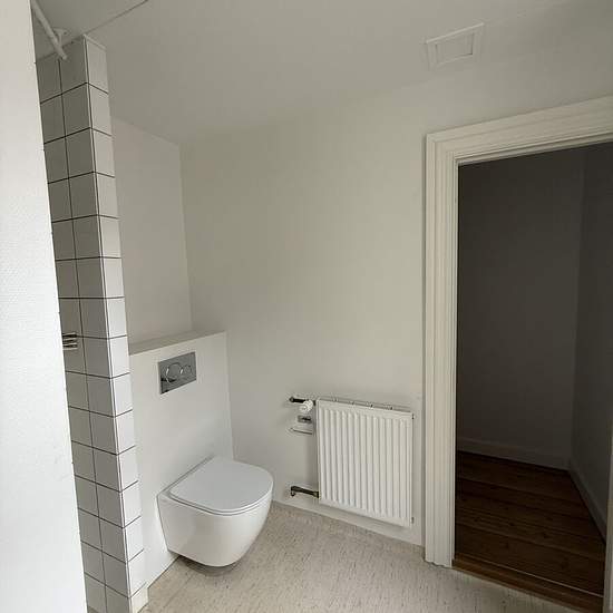Welcome to this share-friendly 4-room apartment located in the heart of Odense C – on the atmospheric Vestergade. The apartment is ideal for three people who want their own room and a shared kitchen and bathroom. The layout is flexible and consists of four separate rooms. One of the rooms functions as a kitchen with all appliances and new white cabinets from KVIK, with just enough space for a dining table by the window. The other three rooms can be used as bedrooms, and one of them also has its own toilet. In addition, there is a separate s...