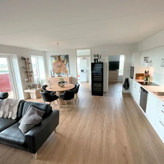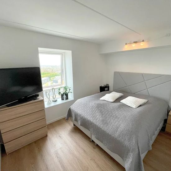 Velkommen indenfor i denne kvalitetsrige lejlighed med en fantastisk udsigt over Aalborg! Lejligheden er 95 kvm, og har en god rumfordeling, hvilket gør den særdeles delevenlig. Den gennemgående stil i lejligheden er moderne, og der er et lyst og indbydende køkken. Der er ligeledes vedligeholdelsesfrie gulve med gulvvarme i hele boligen. Lysindfaldet fra de store vinduer er helt eminent, hvilket skaber en skøn og varm stemning i hjemmet. Ydermere er der adgang til en stor og lækker altan, hvor der er rig mulighed for at nyde udsigten og so...