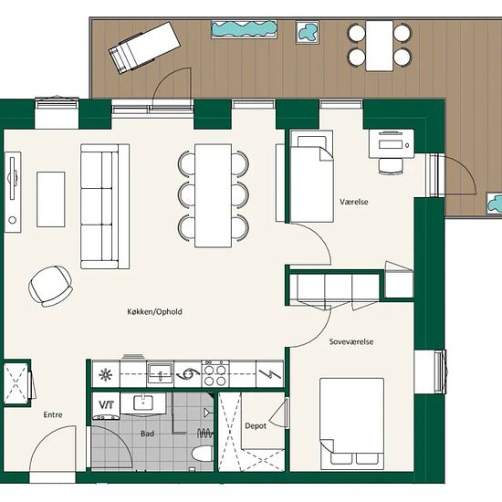 Skøn 3-værelses lejlighed med stor altan i Egeparken