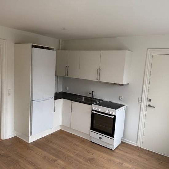 I et roligt område ligger denne skønne 2 værelsers lejlighed. Lejligheden har fået den helt store tur, med nye gulve, deltvist køkken og nye hårdhvidevarer. for 8 mdr. siden. Lejligheden indeholder stue/køkken i et. Køkkenet har nyt køle-/fryseskab, emhætte og komfur. Soveværelset ligger tilbagetrukket fra vejen. I badeværelset er der klargjort for vaskemaskine. Og der er tillige vaskemuligheder i kælderen mod betaling. Til lejligheden er der et depotrum. Der er fri parkering lige udenfor døren. Der er adgang ud til lukket gård...