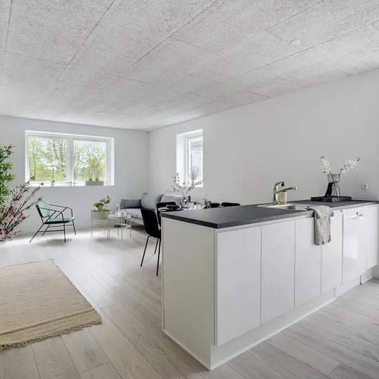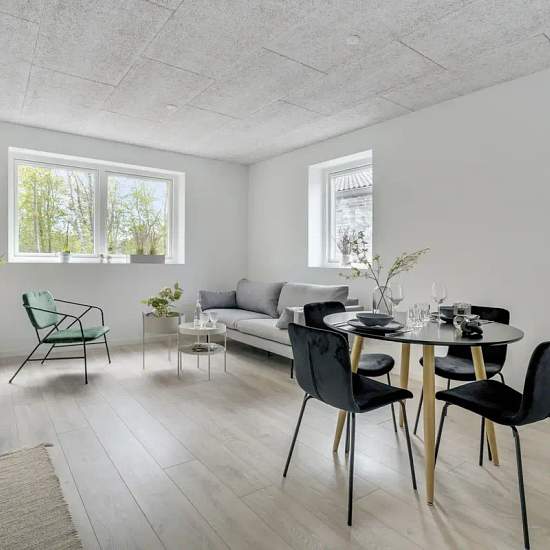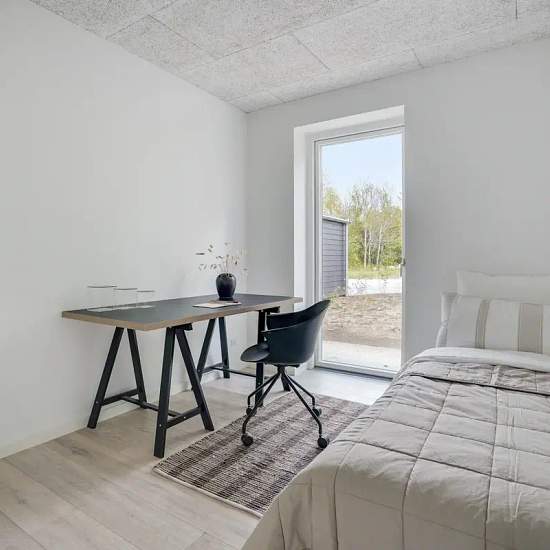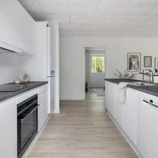 Velkommen til dit nye hjem, et moderne og rummeligt 91 kvadratmeters hus, beliggende i naturskønne omgivelser. Dette hus byder på tre lyse værelser, der giver plads til alle familiens behov. Husets lyse køkken er udstyret med en opvaskemaskine og har direkte adgang til den åbne stue, hvor store vinduer sørger for masser af naturligt lys. Fra stuen kan du træde ud på din overdækket terrasse. Alle værelser har flotte trægulve og god plads, mens det moderne badeværelse byder på stilrene detaljer. For dem, der sætter pris på praktiske løsning...
