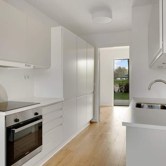 Here you will find, in the green area around Roskilde Town Hall, 48 small apartments from 2020, spread across two properties each with three floors. This apartment is located on the second floor and is arranged with an open-plan kitchen/living area, a bathroom and a bedroom. The white kitchen is equipped with an oven, extractor hood, hob, fridge/freezer and washing machine. The bathroom has a separate shower. The property is located close to the bus to the station, shopping, the pleasant town of Roskilde and Musicon. The lease term is indefi...