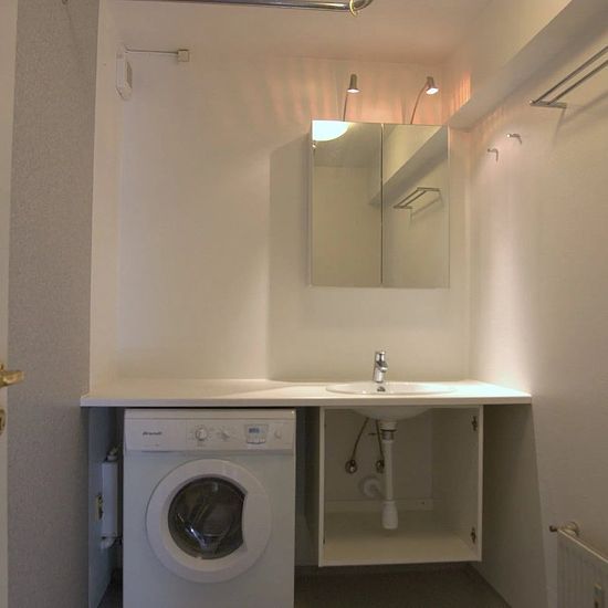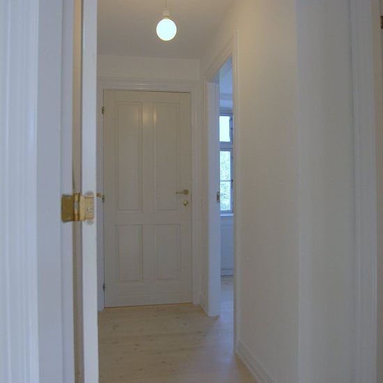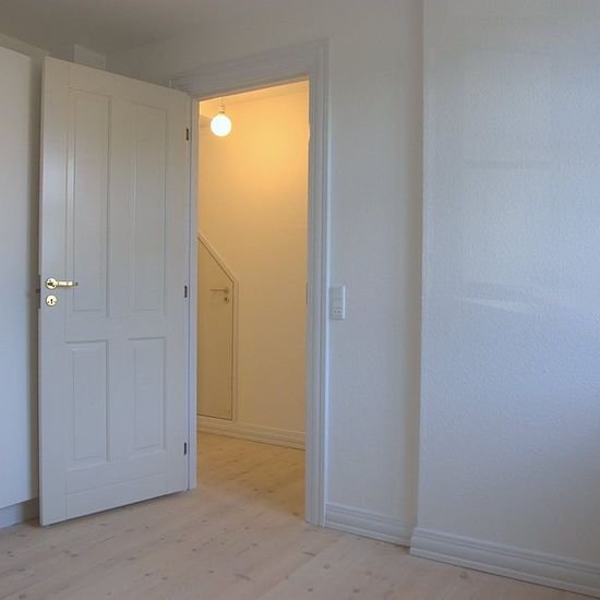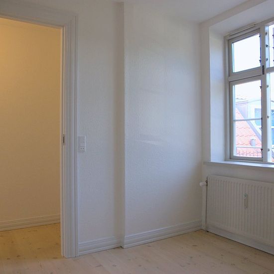 Living room: Bright and spacious living room with room for both sofa and dining area. Kitchen: New and well-equipped kitchen with sink, stove, extractor hood, dishwasher, as well as fridge and freezer. Bedroom: Separate bedroom facing the courtyard, quiet and bright, with built-in wardrobes for storage. Bathroom: Functional bathroom with shower, washbasin, toilet, and combined washer/dryer. The Property: The apartment is located at the top of "The Old Pharmacy," Sæby's oldest fully renovated building from 1836, originally built as a pharma...