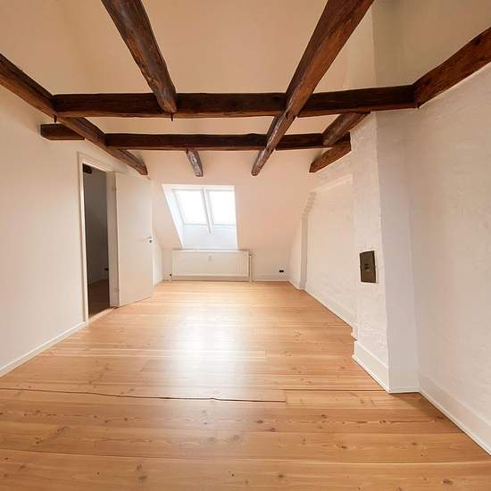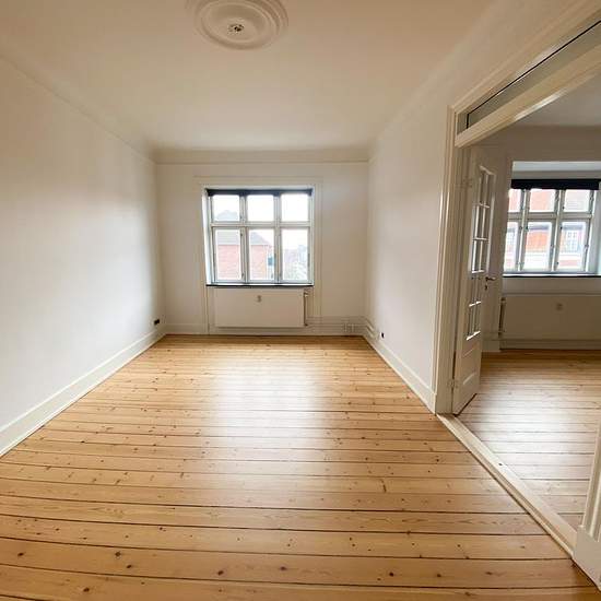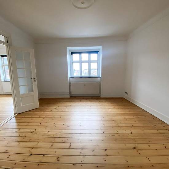 Exciting and bright apartment with generous living spaces and rooms is now for rent for a 2-year period. The apartment is located in a beautiful building on Borups Allé and is situated on the 4th floor spread over two levels with a total floor area of 152 m². The home has a functional layout with good furnishing possibilities and the option for 3 bedrooms. It comprises an entrance hall, a rustic kitchen with an exposed brick wall, microcement flooring and good cupboard space, a bedroom with built-in wardrobes, and two bright living rooms en...