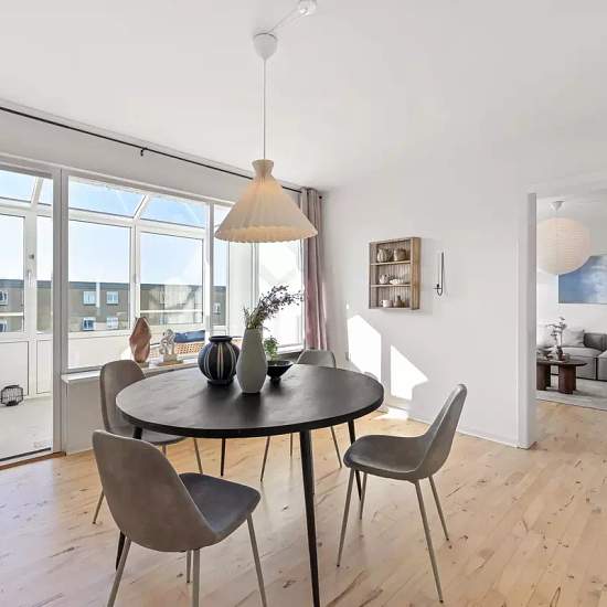 Welcome to Holmparken – a spacious 5-room apartment with a practical layout and plenty of space. The apartment comprises four bedrooms, a large living room with access to a balcony, a separate kitchen fully equipped with all major appliances, and a bathroom with a stacked washer and dryer and a separate shower stall. The layout offers great possibilities – whether you need children's rooms, a home office, or extra storage. The property has green communal areas, a playground, and good parking facilities. It is a short distance to schools, ...
