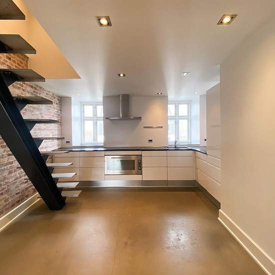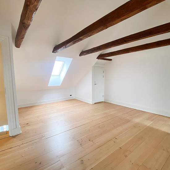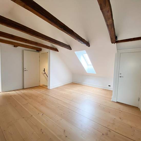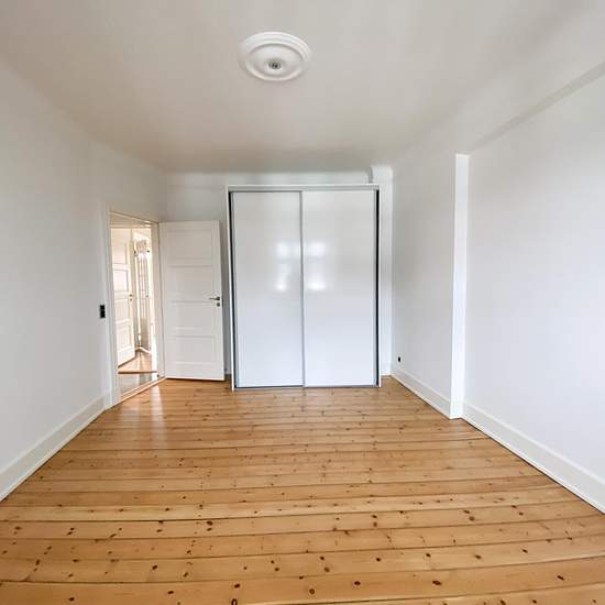 An exciting and bright apartment with generous living spaces and bedrooms is now available for rent for a 2-year period. The apartment is in an attractive building on Borups Allé and is situated on the 4th floor spread over two levels with a total living area of 152 m². The home has a functional layout with good furnishing possibilities. It includes an entrance hall, a rustic kitchen with an exposed brick wall, microcement flooring and good cupboard space, a bedroom with built-in wardrobes, and two bright en‑suite living rooms separated by ...