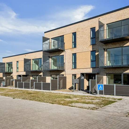 On Anna Anchers Vej you will find a modern and well-appointed ground-floor apartment in a quiet, new residential neighbourhood. Here you get bright rooms, timeless materials and a lovely balcony. The entrance leads into the bright kitchen/dining area and living room in an open-plan layout. The large windows provide great natural light and direct access to the balcony. The kitchen is finished in white, handle-free units with good counter and cupboard space. The apartment comprises two rooms – a spacious bedroom with good wardrobe space and ...