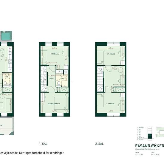 The home: The terraced house has a small front garden and a terrace facing the courtyard. From the kitchen there is a small step up to the living room, which provides a natural room division as well as increased ceiling height in the kitchen. From the living room there is direct access to the terrace and the cosy courtyard where there is also a small playground. The terraced house has 4 bedrooms. All the terraced houses feature beautiful oak plank floors, underfloor heating, a toilet and a bathroom with a washing machine and tumble dryer. T...