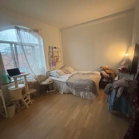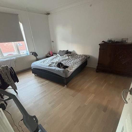 Nydelig lejlighed med centralt beliggenhed. Lejligheden indeholder entre, stor fordelingsgang stort værelse, badeværelse hertil med vaskemaskine samt tørretumbler, stort køkken med plads til spisebord samt stue. Tilladt at have en indekat - hund efter aftale, men max 7 kg. Til lejligheden gårdanlæg samt depotrum til. Mulighed for før overtagelse.