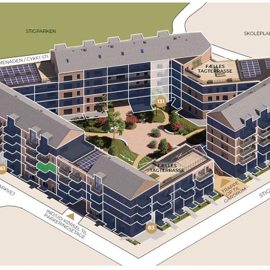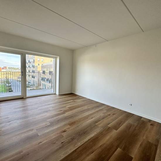 Velkommen til et luksuriøst boligområde på Stigsborg – hvor moderne design møder naturens ro. Denne skønne 3-værelses lejlighed er for dig, som ønsker en stor og rummelig 3-værelses lejlighed med god plads. Lejligheden byder på en éntre med vinduespartier mod gårdarealet. Herefter rammer man leverummet med det smukke HTH køkken med alt i hårde hvidevarer. Køkkenet skaber en naturlig opdeling af køkken/alrum og stuen. Fra stuen er der adgang til den store altan. Lejligheden byder på to gode værelser – det ene med skabe bag skydelåger og den...