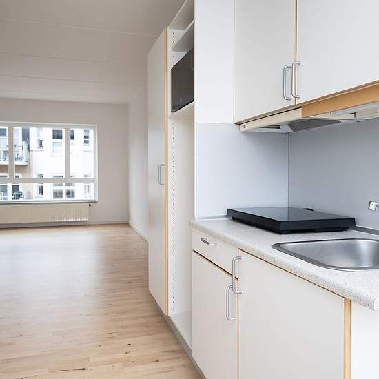 Please note: You must be enrolled in education to be considered for this housing. The student residences at Brohusgade/Vestre Havnepromenade are excellently located in Aalborg city centre and right on the edge of the hugely popular Vestbyen, which is the western part of Aalborg Centre where a very large number of young people live — and we can well understand why! The combination of living in peace away from the city's noise while at the same time being just a stone's throw from the city's pulse (and noise!) is brilliant. Shops and café lif...