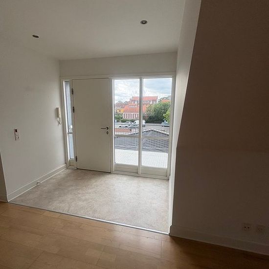 Renovated apartment a few years ago in the middle of Fredericia's pedestrian street. The apartment includes a small entrance, beautiful bright kitchen with a kitchen island and directly connected to the living room, 2 good large rooms, a lovely large bathroom with washing machine and dryer. Wonderful apartment with beautiful lighting, nice materials and location. The apartment also has its own small terrace but shares a large communal terrace. Allowed to have an indoor cat - dogs not allowed. Possibility for early takeover.