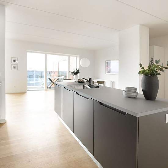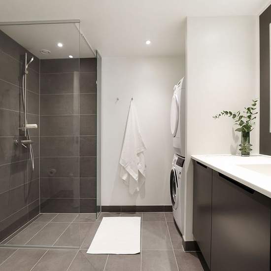 The apartment This large and spacious 5-room apartment is ideal for a family or for those who want extra space. The home has a large, bright living room open to the modern lava-grey kitchen, which is equipped with integrated appliances. The four rooms offer flexible furnishing options, whether you need additional bedrooms, a home office or a multipurpose room. The bathroom is fitted with a shower enclosure and practical laundry facilities, and the apartment also has a guest toilet for extra everyday comfort. Depending on the apartment’s loca...