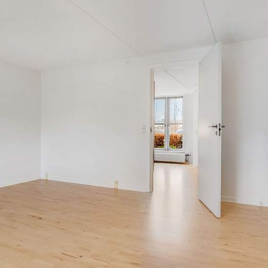 A two-storey terraced house with a small garden for rent. Located in a green area, close to Herning town centre. The ground floor includes an entrance/stairwell, a bright kitchen with dining area and a living room with access to a small terrace/garden. The first floor contains a bathroom and two good bedrooms with built-in wardrobes. The property is bright and has wooden floors throughout. The area is child-friendly and has good facilities, such as a community house with laundry, a playground and a sports field. Located close to shopping....