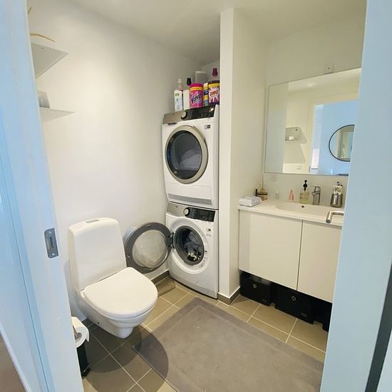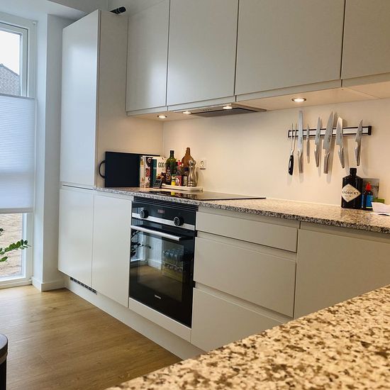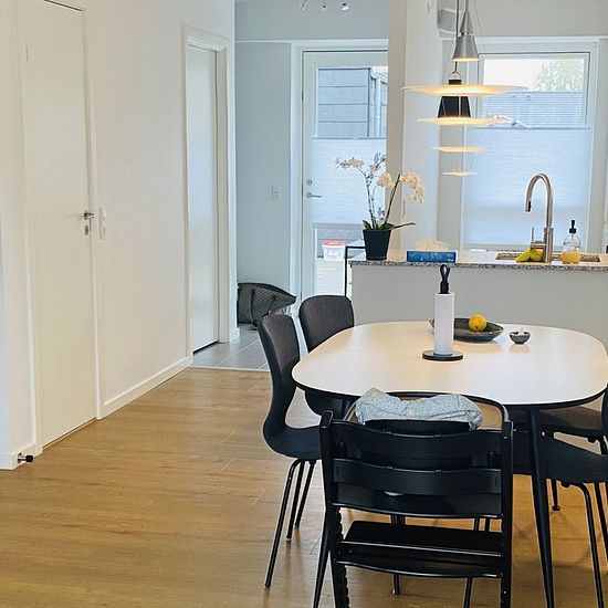 We can now offer a townhouse with 3 bedrooms – the largest with a walk-in closet, open kitchen/living room environment, nice bathroom, front yard, and terrace. The kitchen is from HTH with white handleless fronts, granite countertop, stove with induction and oven with pyrolysis function, fridge/freezer, and dishwasher – all from Siemens. In the bathroom, there is a laundry column with washing machine and dryer. Pictures are from a similar home/development. Included in the rent is access to a large common house with, among other things, a ...