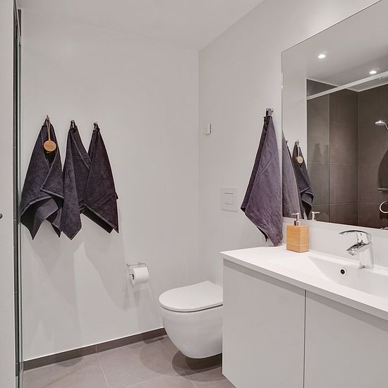 Experience this stylish apartment of 63 square meters, ideally located with a breathtaking view. The entire home features underfloor heating. The open kitchen-living room creates an inviting atmosphere, with large windows, perfect for both everyday life and social gatherings. The kitchen is equipped with modern elements that offer both functionality and aesthetics. The spacious bedroom has plenty of room for both a bed and a desk. The bathroom is elegantly designed with laundry facilities, making everyday life easy and comfortable. Every ...