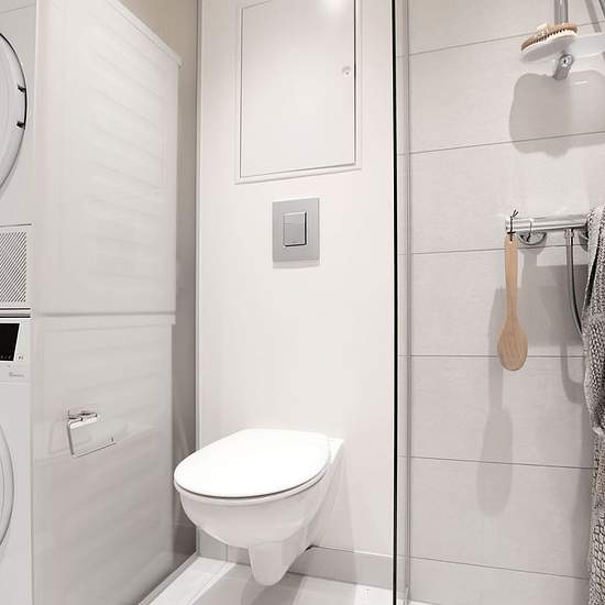 About the home: This lovely, optimized apartment welcomes you into a bright entrance hall with space to hang outerwear. From the entrance you have access to the home's two rooms, each large enough for both a bed and a desk. The large bedroom has access to a storage room, which can advantageously be used as a walk-in closet if preferred. From the entrance you also have access to the bathroom, which is finished in a timeless, stylish design, is spacious and has a separate shower area as well as both a washing machine and a tumble dryer. In the...