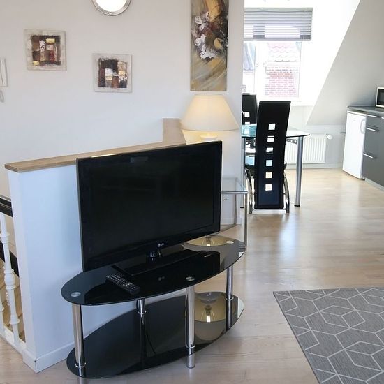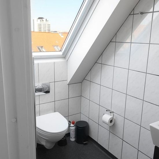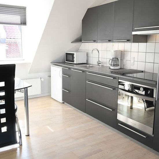 ~ Skøn og lys toværelses taglejlighed beliggende midt i Aarhus centrum ~ Lejligheden er placeret i 2. række fra gaden, med indgang fra en mindre gårdhave. Fra entreen er der egen trappeopgang til køkken, stue, soveværelse og badeværelse. Stuen er indrettet med sofa, lænestol, skrivebord og fladskærms TV. Soveværelset har 2 enkeltsenge og klædeskab. Derudover er der gode store skabe med megen skabsplads i entréen. Det moderne køkken er indrettet med rummelige køkkenskabe og lyse fliser over bordet. Dertil kommer mikrobølgeovn, køleskab med f...