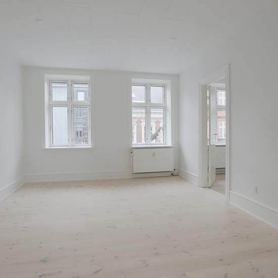 The apartment is under renovation and therefore there are no pictures yet, but you are welcome to book a viewing. This apartment is located on the 1st floor in a quiet, well-maintained building on Esbjerg’s pedestrian street. The apartment features a large, newer kitchen with white HTH cabinets and all major appliances - including a dishwasher. From the kitchen there is a view of the courtyard behind the building. Adjacent to the kitchen there is plenty of space for a dining table. The bathroom is fitted with a new vanity cabinet with m...
