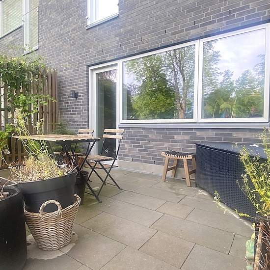 The townhouse offers, among other things, three good bedrooms, a bright living room and a large kitchen-dining area with access to its own small terrace, which leads to a communal area. The home appears bright and attractive with a consistently modern interior. On the ground floor there is an entrance hall with a built-in closet, a large kitchen-dining room with a sleek kitchen and a utility room with washing machine and tumble dryer. There is a bathroom with a shower and a large living room with access to its own terrace. The first floor is...