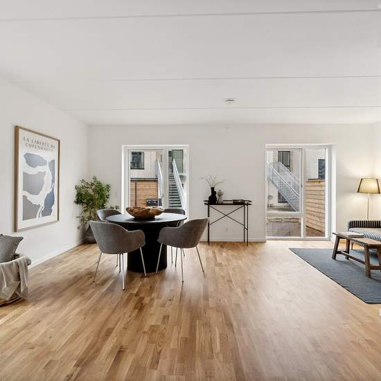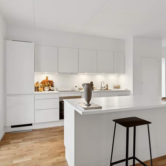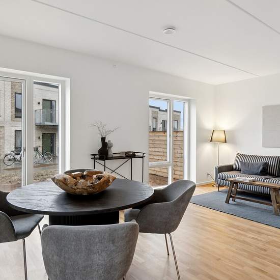 Come inside our newly built rental apartments in Espergærde. The homes are ideal for families with children as well as seniors who want everyday life in a modern rental home in scenic surroundings. The apartments are finished in lovely light and modern materials. All units have spacious rooms, a delightful open-plan kitchen/dining area, a storage room and built-in wardrobes. Additionally, all apartments have a sunny balcony or terrace. The following appliances are included: - Washing machine - Tumble dryer - Dishwasher - Refrigerator-freez...