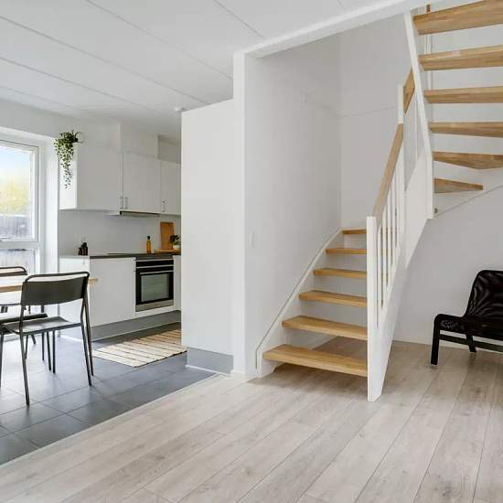 Welcome to your new home in this spacious terraced house of 95 square meters. This lovely home, spread over two floors, offers 3 rooms and is ideal for both families and couples. When you step inside, you are greeted by a bright and inviting entrance hall that leads on to the open-plan living area. Here you will find a modern kitchen equipped with a dishwasher. The kitchen opens up to the living area. From the living room you have access to a lovely enclosed terrace. On the first floor you will find three bright rooms, all fitted with larg...
