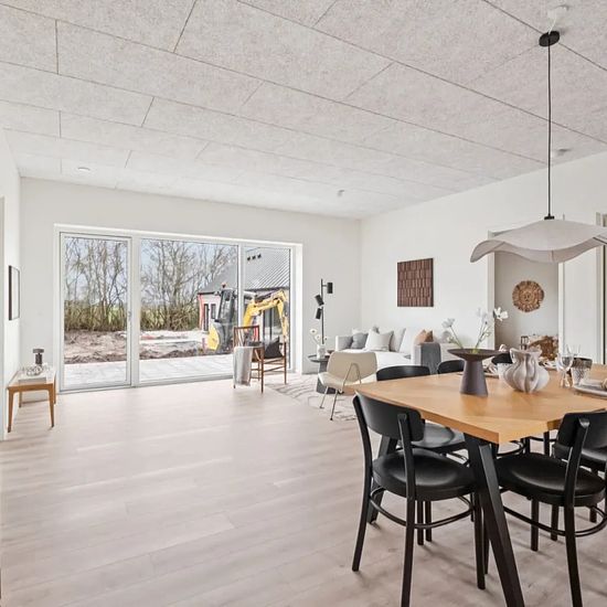 When you step into the townhouse, you are greeted by an entrance hall. From here, there is access further into the living areas of the home. The ground floor is designed with an open plan kitchen and living room. The kitchen is conveniently located with plenty of cupboard space and necessary appliances, and adjacent to it there is space for a dining table. The living room is a good size and can be furnished with both a sofa area and dining area, depending on your needs. From the living area, there is an exit to a terrace. On the ground flo...